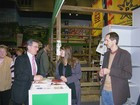 Aber auch hier konnte der interessierte Besucher seine Fragen und Belange mit dem kompetenten Standpersonal - hier auf dem Bild sehen Sie Dr. Jurkschat (Landesamt für Verbraucherschutz Landwirtschaft und Flurneuordnung und Vertreter des Schafzuchtverbandes Berlin-Brandenburg) und Frau Höfken (Mitglied des Bundestages und Vorsitzende des BDZ) - diskutieren.